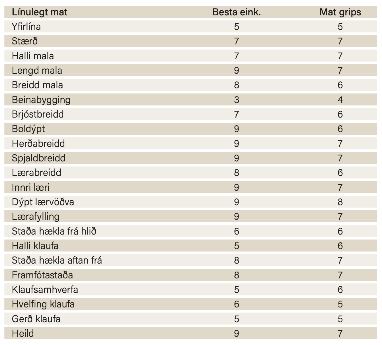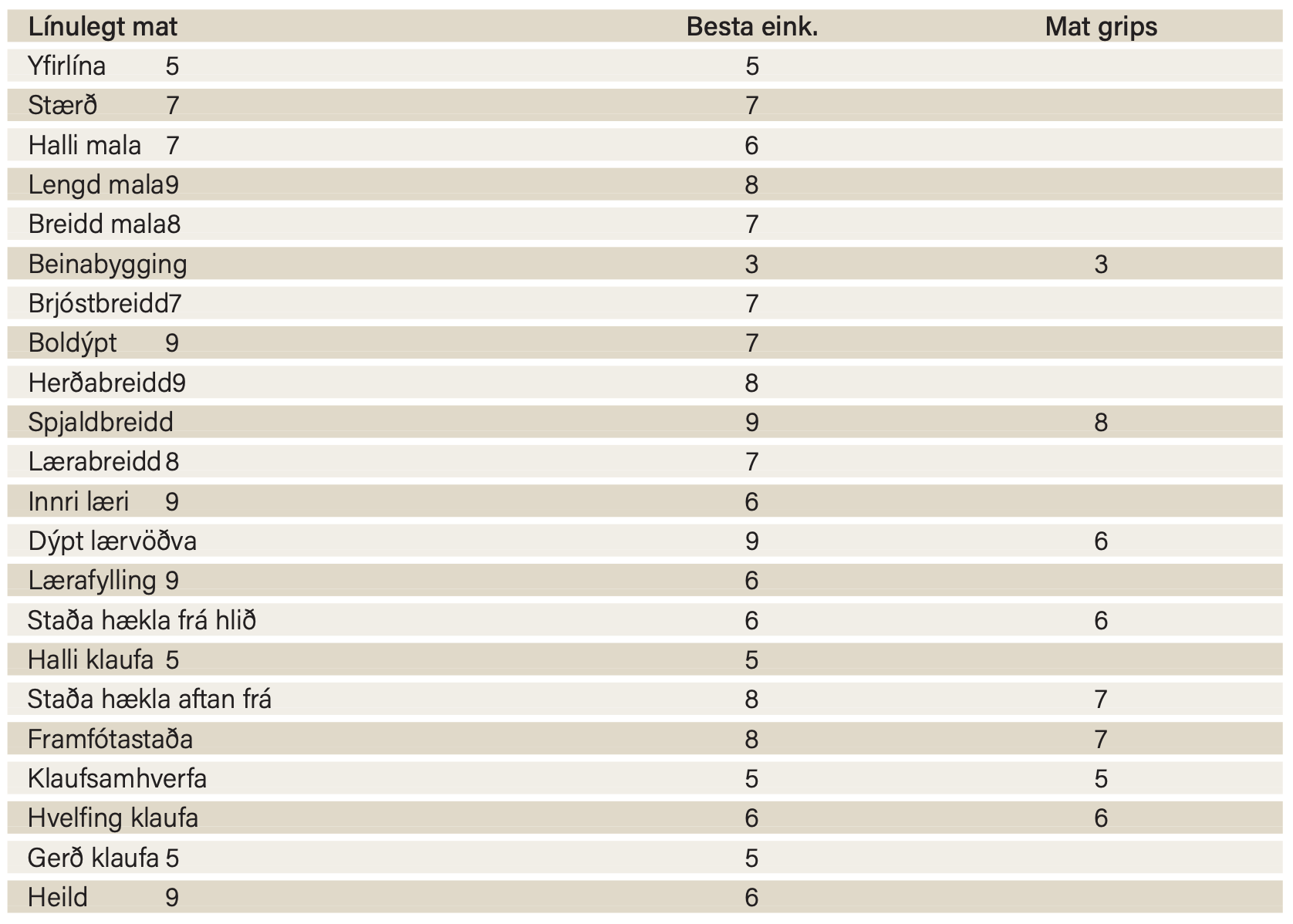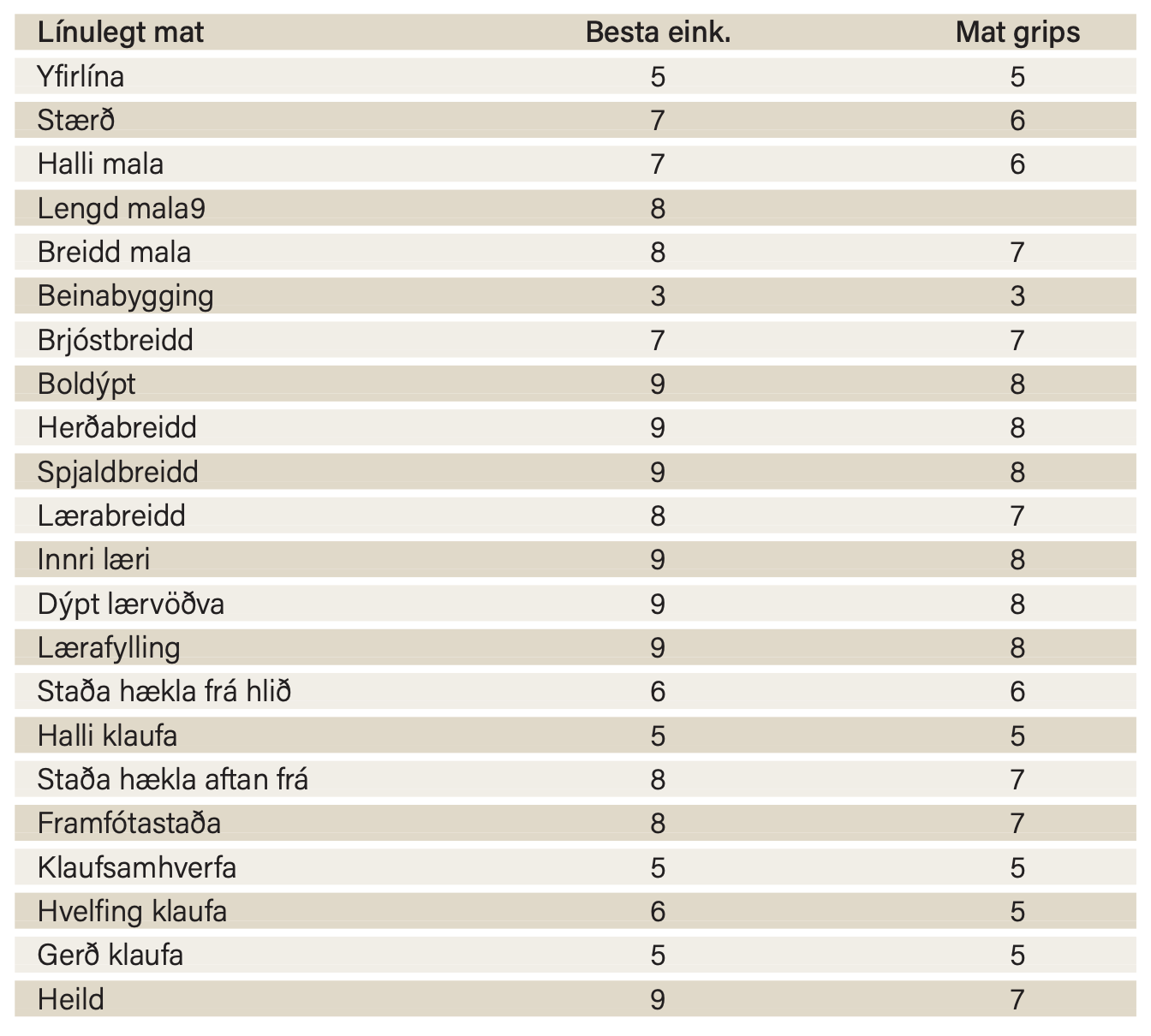 Ómvöðvi: 68,2 mm, ómfita: 4,90 mm.