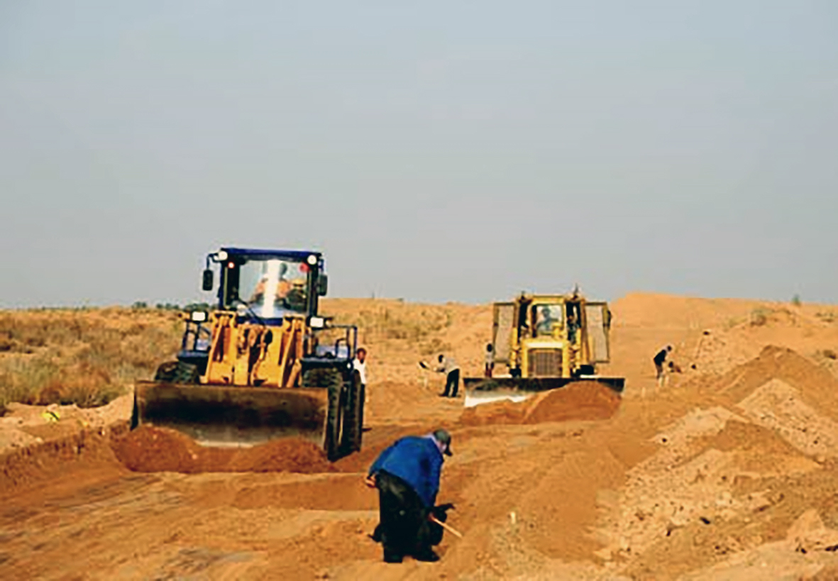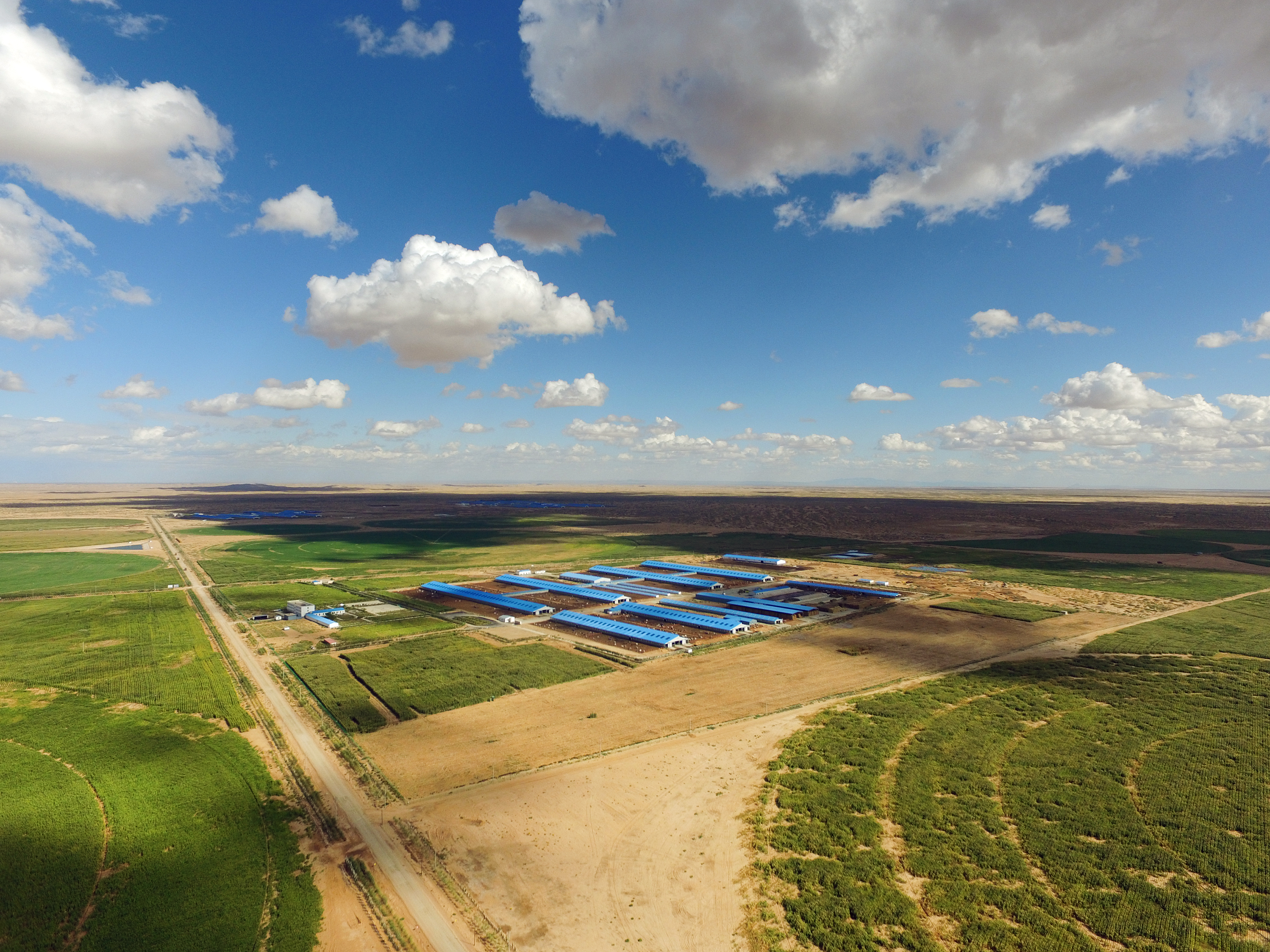 Fyrirtækið fékk úthlutað hluta af Ulan Buh eyðimörkinni og svo var hreinlega hafist handa við að jafna margra metra háar sandöldur og lægðir á stærðarinnar svæði og voru notaðar til þess mikill fjöldi af jarðýtum og þúsundir vinnustunda. Fyrst var byggður vegur eftir miðju svæðinu og svo út frá honum jafnað land fyrir ræktun og fjós.