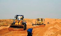 Hér er verið að ryðja vegi í eyðimörkinni.
