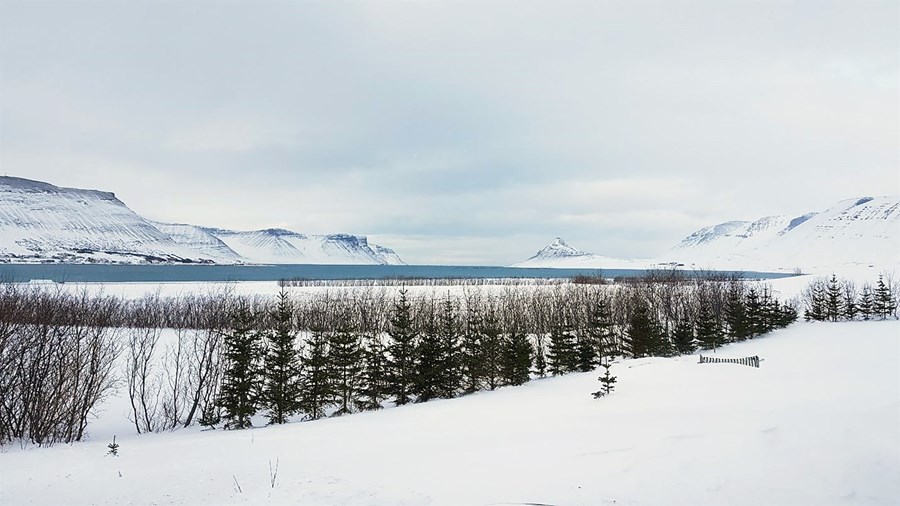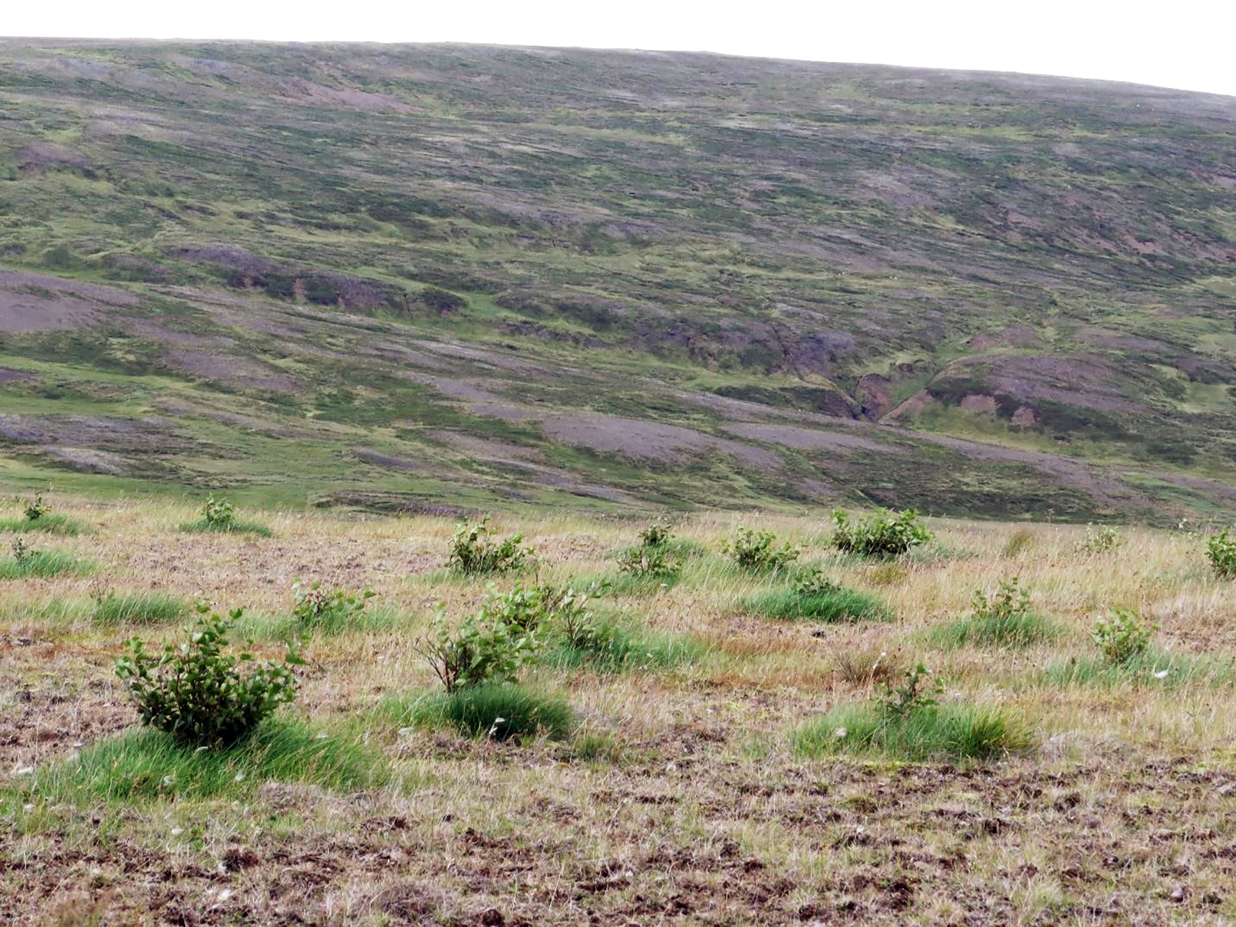 Skjólbelti sem samanstanda af nokkrum trjá- og runnategundum á Höfða í Dýrafirði.