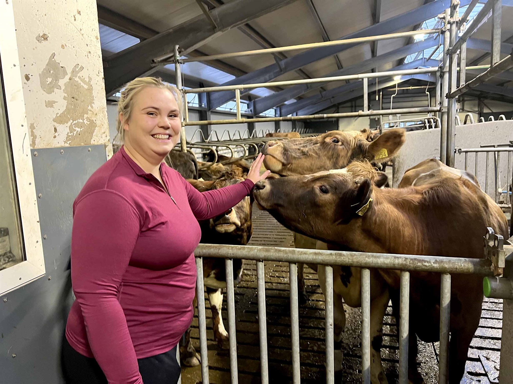 Auður unir sér vel við aða annast kýrnar, huga að heilsu þeirra og mjöltum.