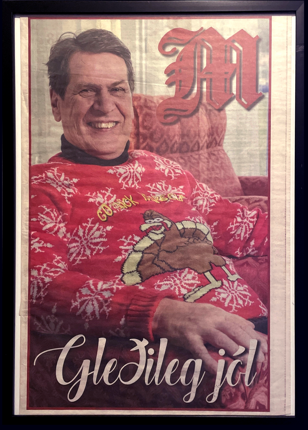 Aðventan nálgast og kosningar einnig og fyrsta jólaskrautið er komið upp í Göngustaðakoti. Það er innrömmuð mynd af Brynjari Níelssyni í jólapeysu. „Ég klippti hana út úr Mogganum og rammaði hana inn. Jólaskraut sem kostaði nær ekkert. Fólki fannst þetta fyrst skrítið en nú er farið að spyrja eftir honum. Þetta er uppáhaldsjólaskrautið mitt og alltaf það fyrsta sem fer upp á þessu heimili,“ segir Auður að bragði.