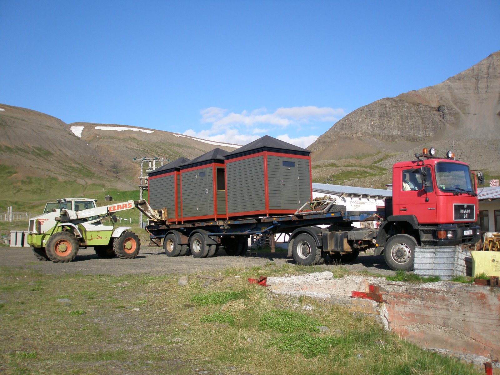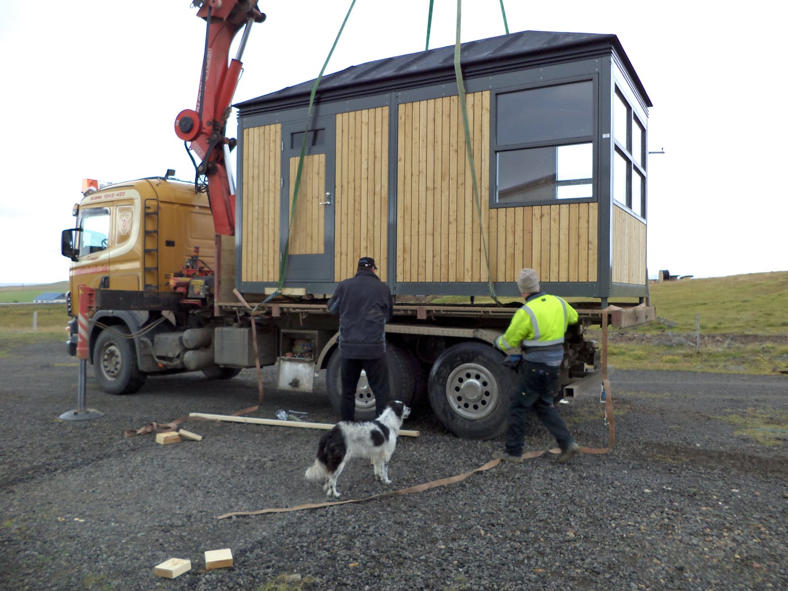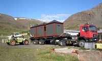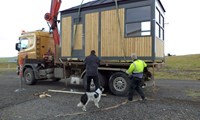 „Það er mjög auðvelt að flytja húsin á vörubílspalli og komin góð reynsla á það. Hægt er að flytja tvær samsettar einingar og það hefur oft verið gert,“ segir Kári. „Ég hef alltaf lagt áherslu á það að kaupendur séu búnir að ganga frá undirstöðunum þannig að það sé hægt að hífa húsin beint á sinn stað. Húsin eru þannig útbúin að það eru festingajárn á hverju horni og bolti í ró sem gengur niður úr. Menn eru enga stund að stilla húsið af, en að því loknu er boltinn rafsoðinn í plötu sem er í undirstöðunni. Niðursetningin á húsunum er einföld, þægileg og fljótleg. Ef menn þurfa að færa húsið til, er suðan skorin upp og húsið híft af undirstöðunum á flutningatæki.“