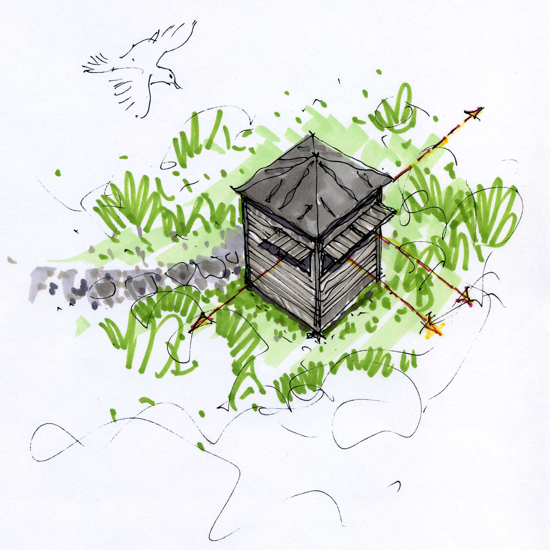 Stefán segir að það sem hafi ráðið ferðinni í hönnuninni var að hafa húsið frekar einfalda smíði og fallegt að sjá. „Markmiðið var að húsin gætu þjónað mörgum hlutverkum, t.d. sem klósett, sturtur, landvarðahús, skeiðvallarhús, fuglaskoðunarhús og svo framvegis. Jafnframt væri þetta sama gerðin sem hægt væri að „prjóna við“ ef þyrfti. Útlitið væri áþekkt og menn þekktu því að hverju þeir gengju.“