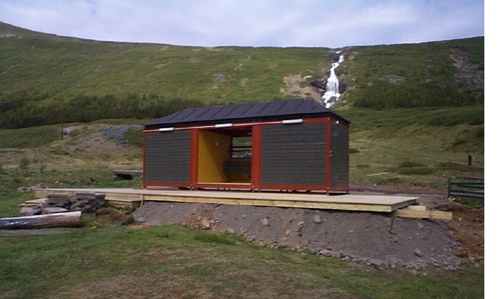„Hugmyndin að baki húsunum er þessi svokallaði laupur, það er að segja grind sem er hugsuð þannig að hún sé ferhyrningur sem geti annað hinum ýmsu þörfum. Grunneiningin er 2,4 x 2,4 metrar og hægt er að raða þeim saman. Grindin stendur á steyptum undirstöðum, forsteyptum stólpum. Það er hægt að einangra húsin ef menn vilja, loft og gólf með hefðbundnum hætti og útveggina með 30 mm pressaðri steinull,“ segir Stefán. Húsin eru hugsuð fyrir vatnssalerni þar sem er rennandi vatn og hægt að koma við rotþró. Það er hægt að hafa ljós inni en gluggar eru á húsunum sem veita birtu inn í rýmið.