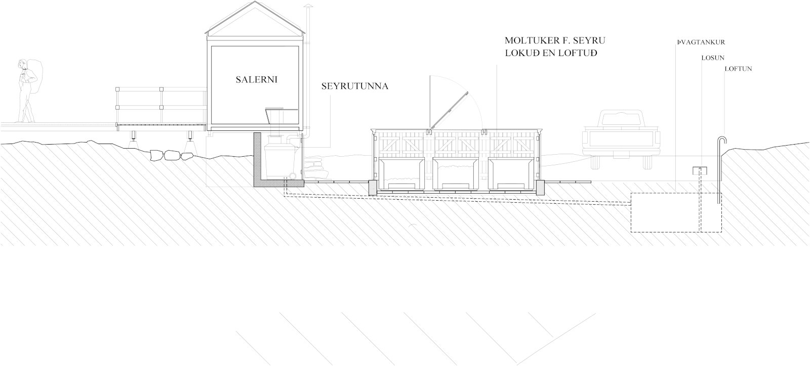 Þar sem ekki er rennandi vatn og mögulega ekki hægt að koma fyrir rotþróm vandast salernismálin. Arkitektarnir hjá ARGOS, en það heitir arkitektastofa þeirra Stefáns Arnar Stefánssonar og Grétars Markússonar, hafa í samvinnu við Ragnhildi Gunnarsdóttur hjá verkfræðistofunni Eflu unnið að hönnun aðstöðu sem leysir þessi vandamál.