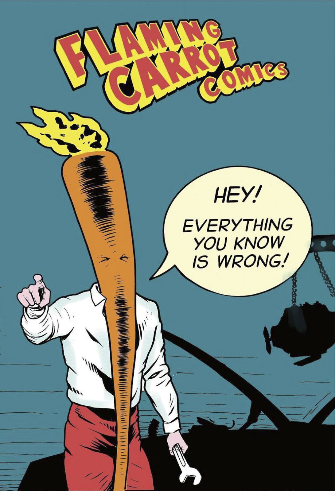 Flaming Carrot Comics fjallar um líf og leik hins dularfulla Gulrótar­manns.