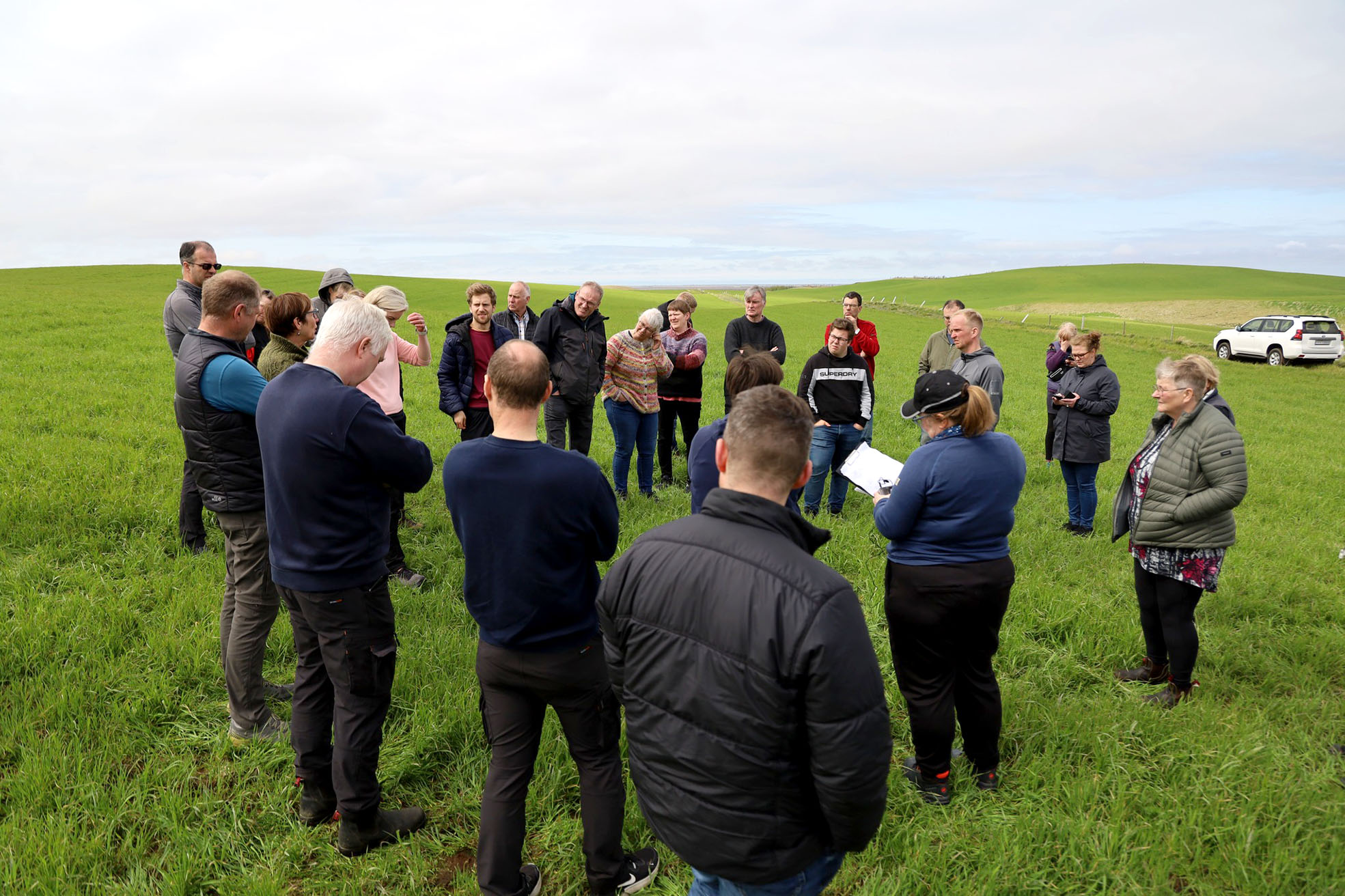 Dagurinn byrjaði á því að Aðalbjörg og Eyvindur sögðu frá búrekstrinum, sögu bæjarins og þeim áskorunum sem þau standa frammi fyrir í sínum rekstri. Þau hafa nýverið sameinað jarðirnar og reksturinn í Stóru-Mörk I og III. Þau hafa verið mjög öflug í uppgræðslu og Stóra- Mörk er eitt af fáum búum sem hefur verið í verkefninu Bændur græða landið frá upphafi. Fyrir hádegi var mikil áhersla lögð á túnrækt og uppgræðslu, hvað hægt sé að gera til þess að auka og bæta uppskeru. Ráðunautar lögðu m.a. áherslu á að bændur taki jarðvegssýni til þess að þekkja samsetningu og sýrustig jarðvegarins, velji rétt yrki og noti smára til þess að auka niturbindingu í jarðveginum.