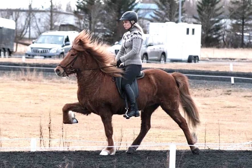 Töltið og hæga töltið er mjög gott, takthreint, mjúkt með góðri lyftu og jafnan skrefmikið með miklum fótaburði. Sé skeið fyrir hendi er það takthreint og öruggt. Stökkið er ferðmikið með góðri fótlyftu og hæga stökkið er jafnvægisgott og takthreint. Fetgæðin eru misjöfn bæði hvað varðar skreflengd og framtak. Afkvæmin eru ásækin í vilja en þjál og fara afar vel í reið, reist með miklum fótaburði.