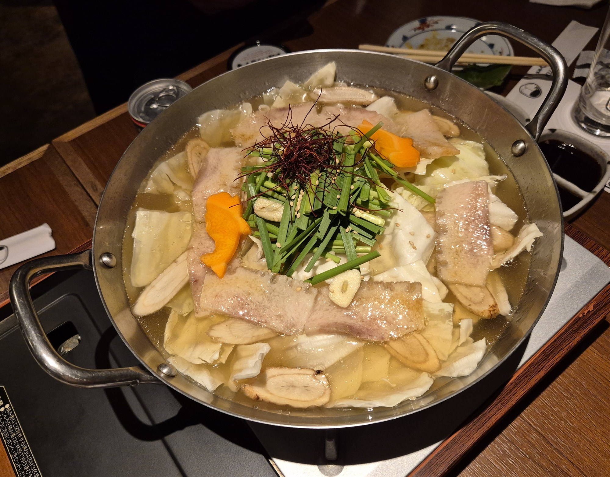 Síðast var borin fram hvalkjötssúpa, „hot pot“ eins og Japanir kalla hana. Munurinn á íslenskri kjötsúpu og hvalkjötssúpunni er aðallega fólginn í að grænmetið og kjötið er lítið soðið. Oft fær maður kjötið þunnskorið á diski og stingur því ofan í pottinn með grænmetinu og veiðir það svo upp og borðar. Að síðustu er súpan og grænmetið borðað. Bragðið af hvalkjötssúpunni var afar milt en samt bragðmikið. Það var augljóst að soðið í súpunni hafði verið látið malla lengi með beinum eða einhverjum parti af hvalnum til að ná fram fyllingunni í bragðinu. Þetta var réttur sem, að mínu mati, öllum íslenskum sveitamönnum hefði líkað.