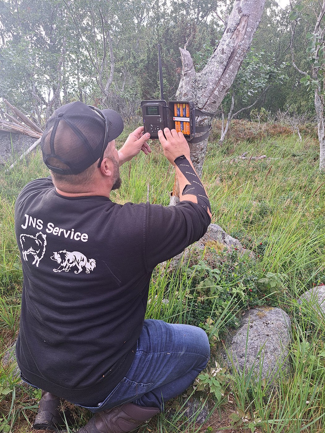 Johan Sten yfirfer stillingar á eftirlitsmyndavél. Mynd / Jóhannes Sveinbjörnsson