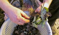 Fyllt er með mold upp að brún pottsins og vökvað yfir með vatni til þess að ræktunarefnið sé vel rakt en þó ekki blautt. Rótarendinn skal snúa að miðju pottsins og blöðin í átt að brún (Mynd 2). Eftir að plöntunar eru lagðar á moldinna þá þarf að hylja rætunar með auka mold til þess að ræturnar þorni ekki upp (Mynd 3). Þá er vökvað yfir til þess að tryggja að plöntunar fái nægt vatn en þó ekki of mikið, þetta hvetur rætunar til að leitar eftir vatninu og byrja að vaxa.
