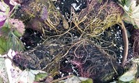 Mynd 4: Ræturnar á stofnplöntum ættu að vera ljósbrúnar (vinstri) en ekki dökkbrúnar (hægri).