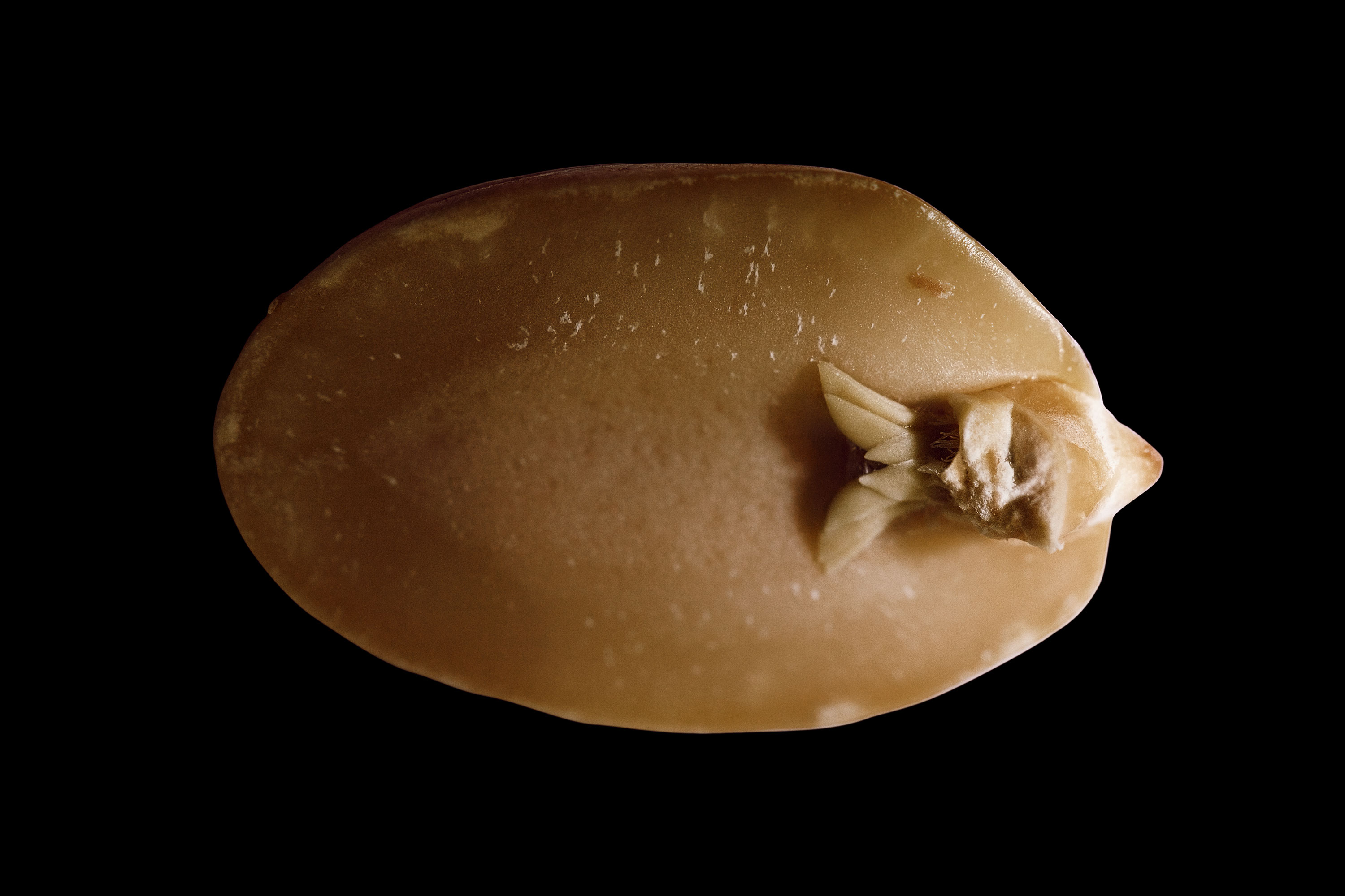 Sé fullþroska fræ klofið í sundur sést að innan í því er að finna litla kímplöntu með blöðum. Það er hún sem vex í nýja plöntu sé lifandi jarðhnetubaun sáð.