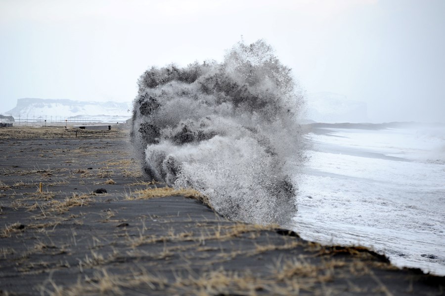 Mikill ágangur sjávar brýtur stöðugt af grónu landi milli sjávar og byggðar sem getur fangað sandinn áður en hann berst inn í þorpið. Á síðastliðnum árum hafa tugir metra af landi tapast með þessum hætti og fjöruborðið færist stöðugt nær byggðinni. Varnargarðar sem Vegagerðin hefur byggt hafa hægt á þessari þróun og nær stöðvað hana vestan Víkurár. Austar er fjaran enn að ganga nær byggðinni og sér orðið á veikbyggðum sjóvarnargarði sem ver byggðina. Austan við byggðina austur að nýlegum Kötlugarði er sjávarkamburinn farinn, svo sjór gengur í verstu veðrum upp að þjóðvegi 1.