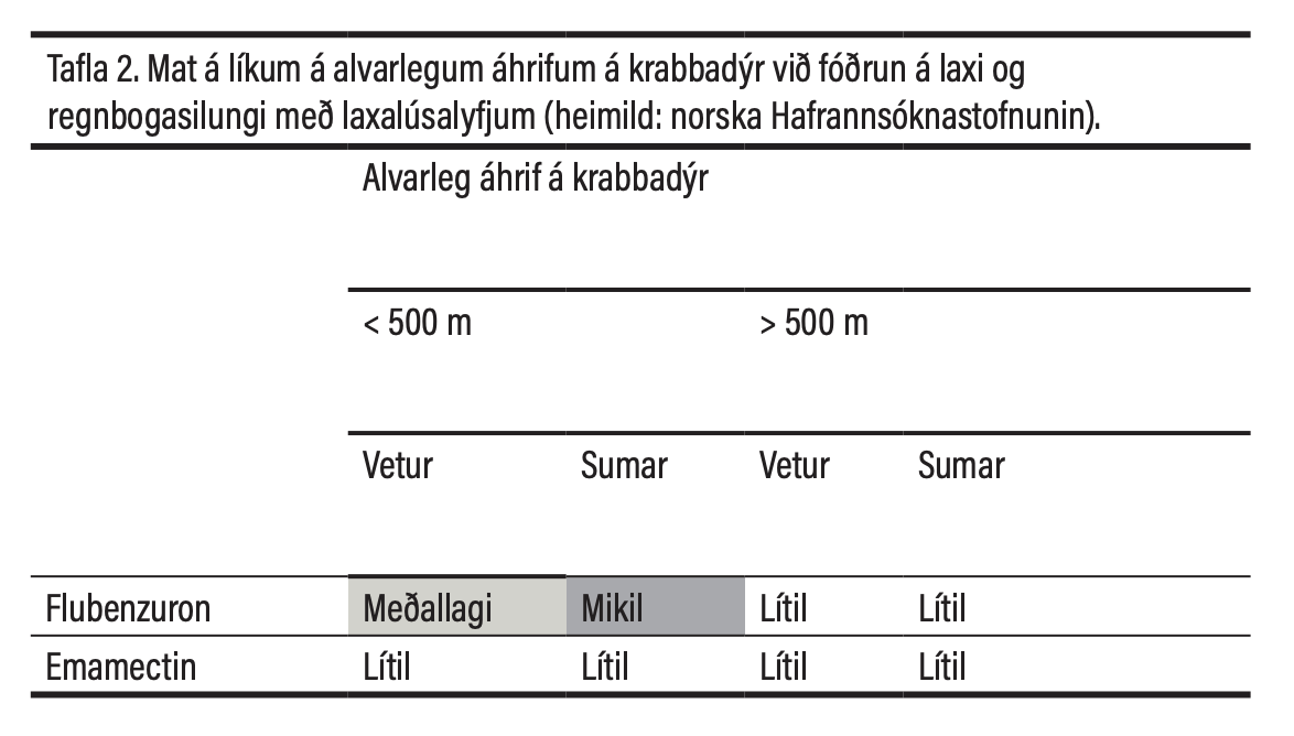 Það er oft mikið gert úr neikvæðum áhrifum notkunar laxalúsalyfja og vissulega geta áhrifin verið neikvæð í sumum tilvikum. Það sem hins vegar er gagnrýnivert er óheft notkun laxalúsalyfja án þess að það liggi fyrir áhættumat á mögulegum staðbundnum og neikvæðum áhrifum lyfjanna á lífríkið.