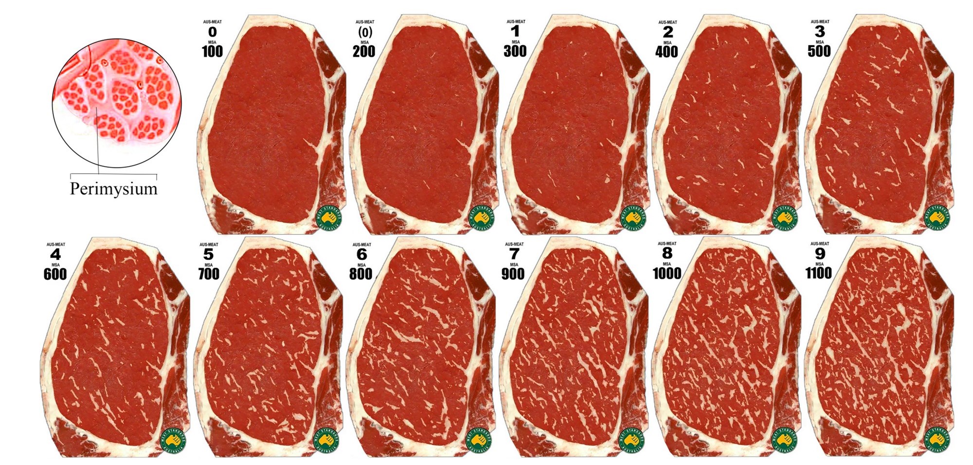 Fita er lykilatriði þegar kemur að t.d. áferð, safa, meyrni og bragðgæðum kjöts. Hér er dæmi um mismunandi fitusprengingu. Mynd / Bulkaini et al. / J. Adv. Vet. Anim. Res., 9(3): 419–431, sept.‘22