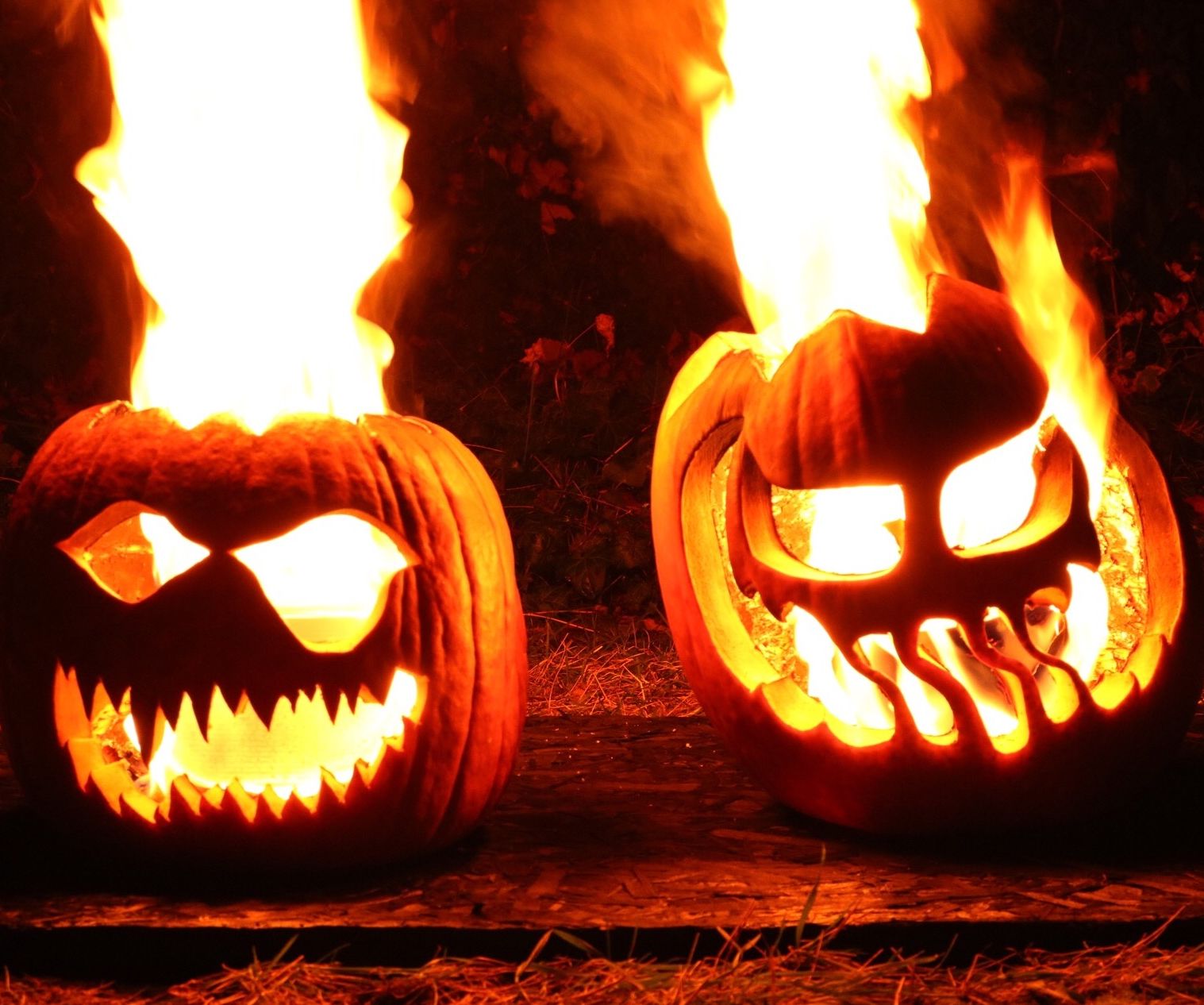 Útskorin grasker með andlitum tengjast hrekkjavöku.