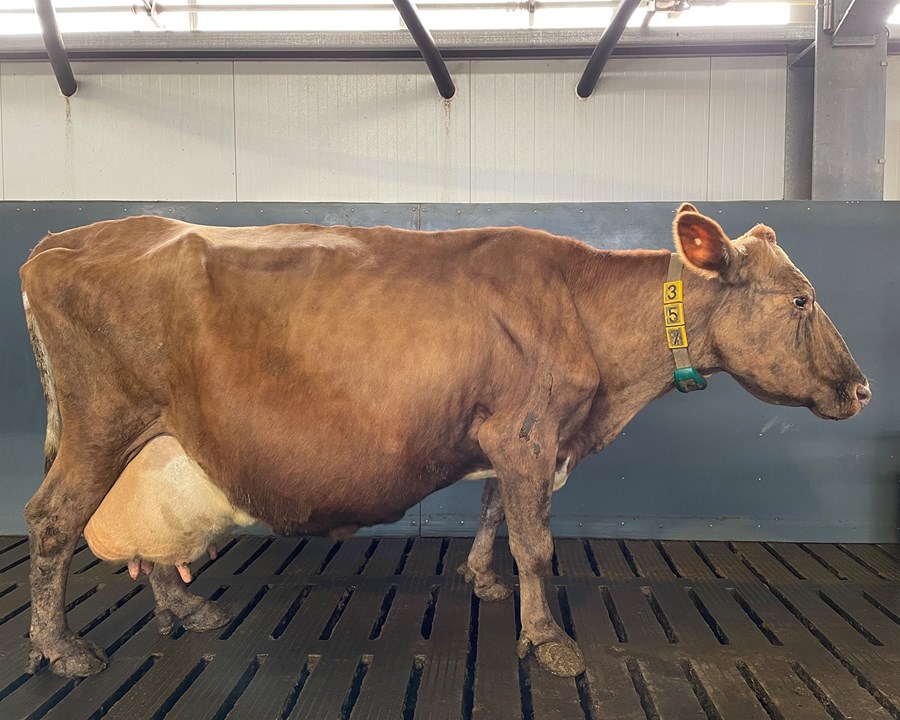 Móðurfaðir Ríkeyjar var Afli 11010 en því miður féll hún frá nú rétt fyrir síðustu jól. Ríkey mjólkaði 13.612 kg með 3,54% fitu og 3,32% próteini en sínum öðrum kálfi bar hún 12. febrúar 2021. Hún fór hæst í 52,6 kg dagsnyt á árinu 2021 en skráðar æviafurðir hennar eru 23.427 kg.