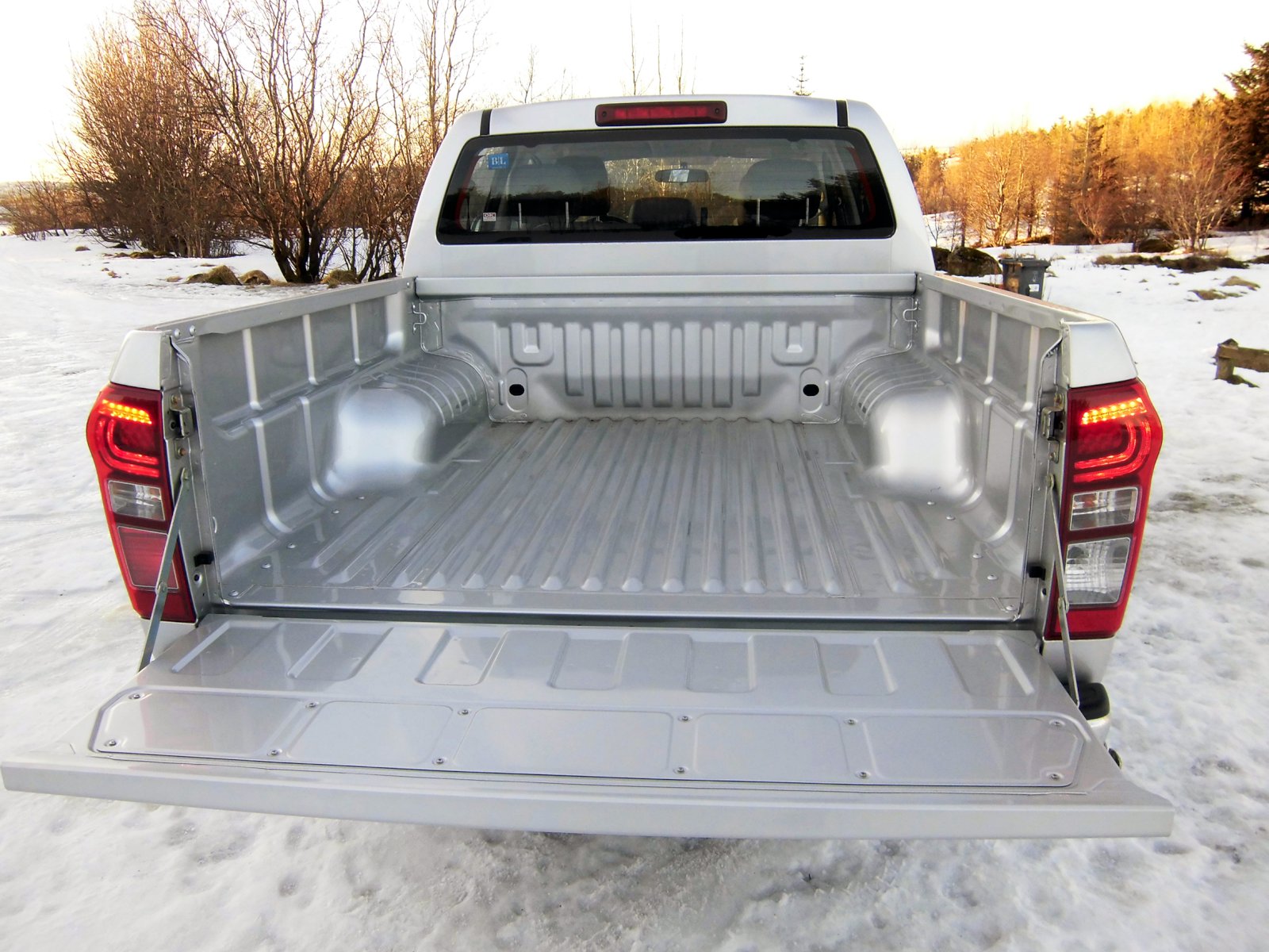 Þessi nýja vél gerir það að nú má bíllinn draga 3.500 kg vagn sem er útbúinn bremsubúnaði (síðasti D-Max sem ég prófaði í maí 2014 mátti bara draga 3.000 kg vagn). Hér virðist vera kominn bíll sem ætti að henta vel til að draga hestakerrur, en þar sem ekki var krókur á bílnum sem ég prófaði gat ég ekki prófað léttleika bílsins með þunga kerru aftan í honum. Pallurinn er stór og samkvæmt minni mælingu var hann 154 cm á breidd, 155 cm langur lokaður og með opinn gaflinn er hann 211 cm. Heildarburðargeta bílsins er rúmt tonn (sama og í síðustu árgerð).