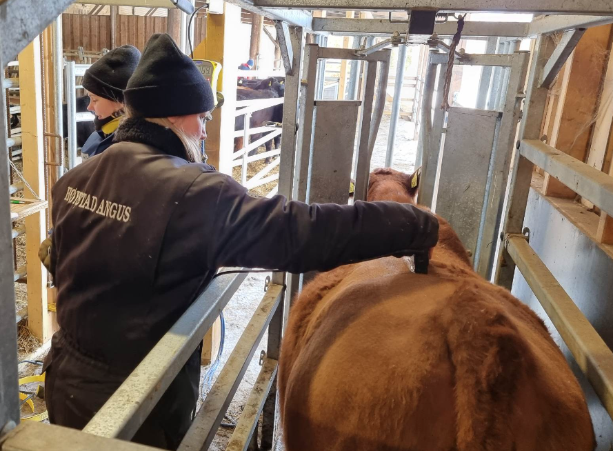 Eftir þjálfun RML starfsmanna á Staur var farið með Kristian að dæma ársgömul naut og kvígur hjá Svein Eberhard Østmoe, eiganda Høystad Angus og formanni Norsk Angus félagsins. Svein er mikill ræktunarmaður og hefur verið öflugur í notkun sæðinga og fósturvísa og má rekja nokkur íslensk Angus naut til hans bús.