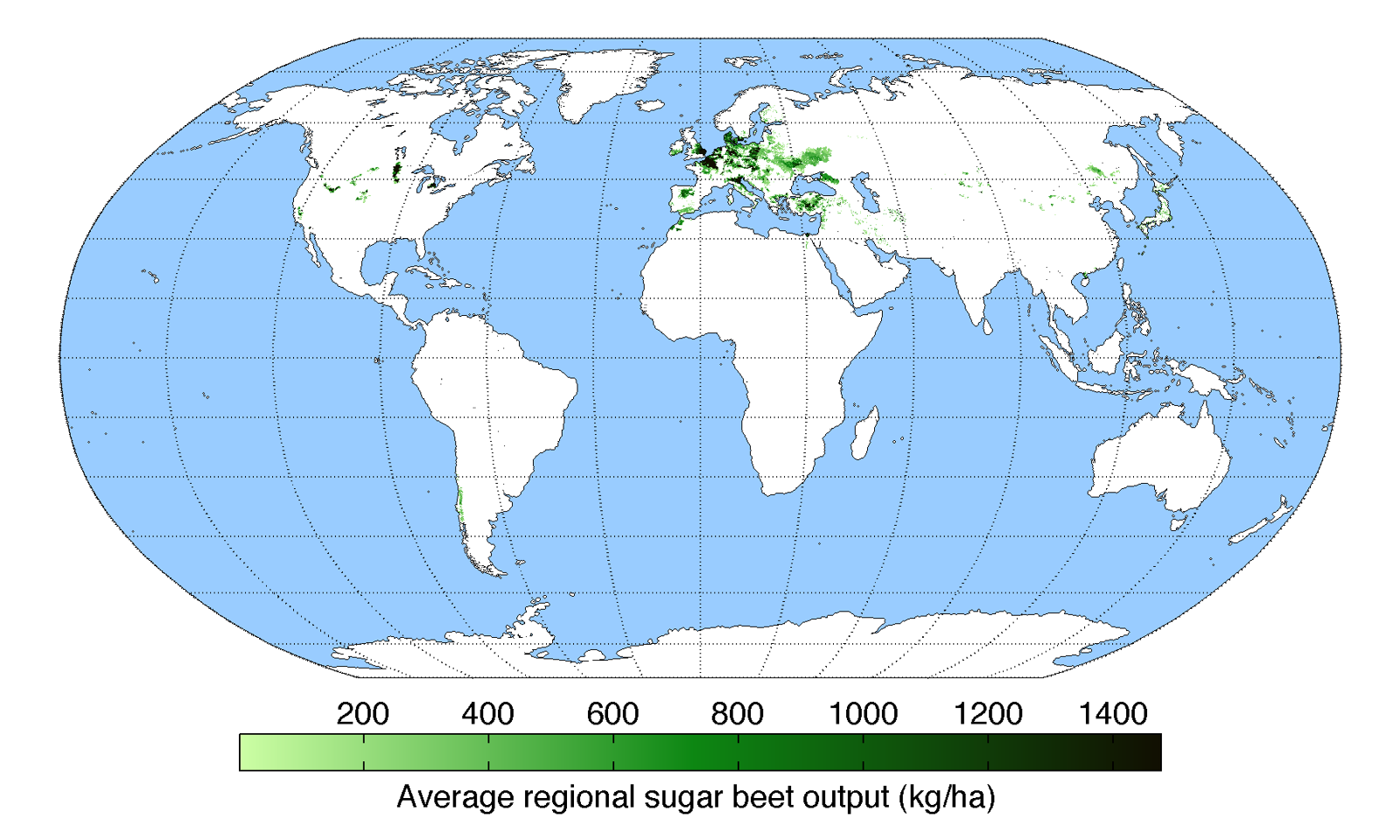 Helstu ræktunarsvæði sykurrófna í heiminum.