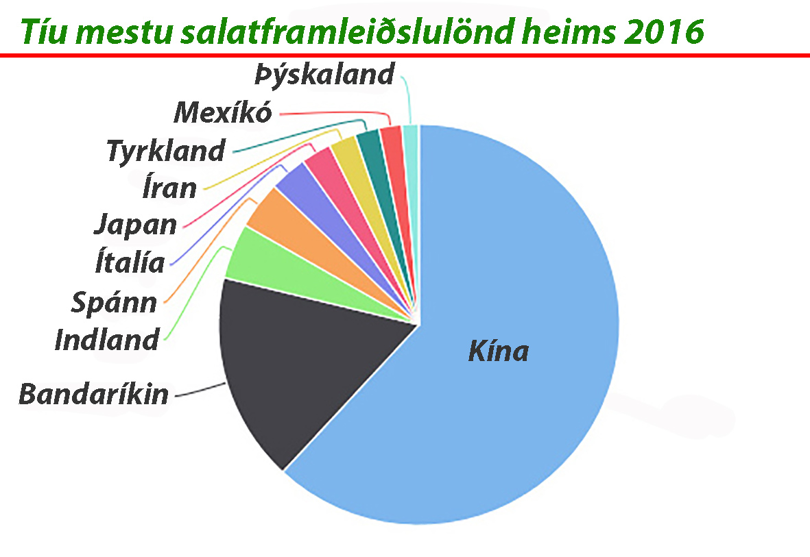 Heimsframleiðsla á salati, af tegundinni Lactuca sativa, árið 2016 er áætluð tæplega 27 milljón tonn og hefur framleiðslan þrefaldast frá 1980.