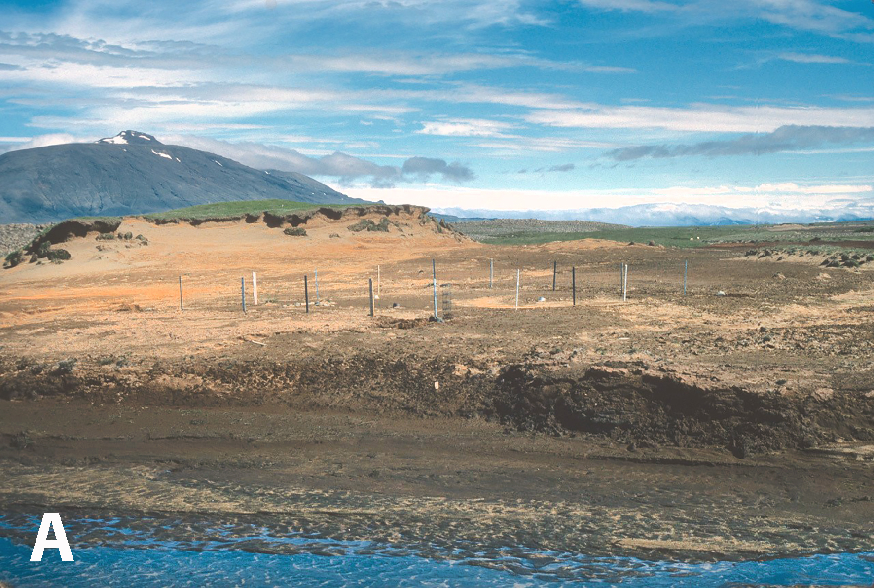 Við Heygil á Hrunamannaafrétti hefur greinarhöfundur rannsakað gróður og fylgst með gróðurbreytingum frá árinu 1981 í tuttugu 10x10 m föstum gróðurreitum sem lagðir voru út á land sem í upphafi var á mismunandi stigum rofs og endurgræðslu (1. mynd). Fjórtán reitir eru á beittu landi en sex voru girtir af og friðaðir fyrir beit. Í reitunum hafa ýmsir jarðvegs- og gróðurþættir verið mældir, m.a. heildargróðurþekja, þekja einstakra æðplöntutegunda og jarðvegsþykknun. Þegar rannsóknirnar hófust við Heygil var þarna mikil gróðureyðing, háar torfur, opnir rofjaðrar og mikill uppblástur úr moldum og rofabörðum. Þá var fjárfjöldi í hámarki í afréttinum og gróður mikið bitinn.