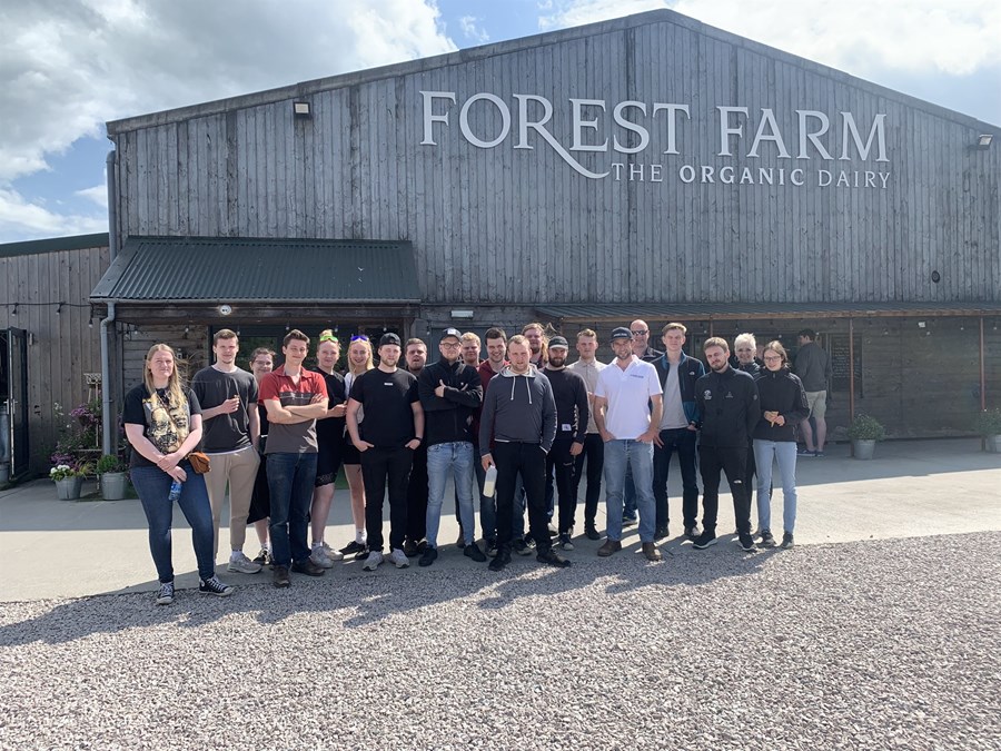 Síðasta bændaheimsóknin í þessari ferð var svo á kúabúið Glasgoforest, sem er lífrænt vottað kúabú sem selur bæði drykkjarmjólk og heimagerðan ís beint frá býli. Búið er með 140 Holstein kýr og er í eigu bræðranna William og Angus Willis og fjölskyldna þeirra. William tók á móti hópnum og fór yfir reksturinn sem er í dag ansi umsvifamikill enda ísgerðin og mjólkursalan vinsæl meðal íbúa Aberdeen en búið er, líkt og Marshalls, skammt frá borginni.
