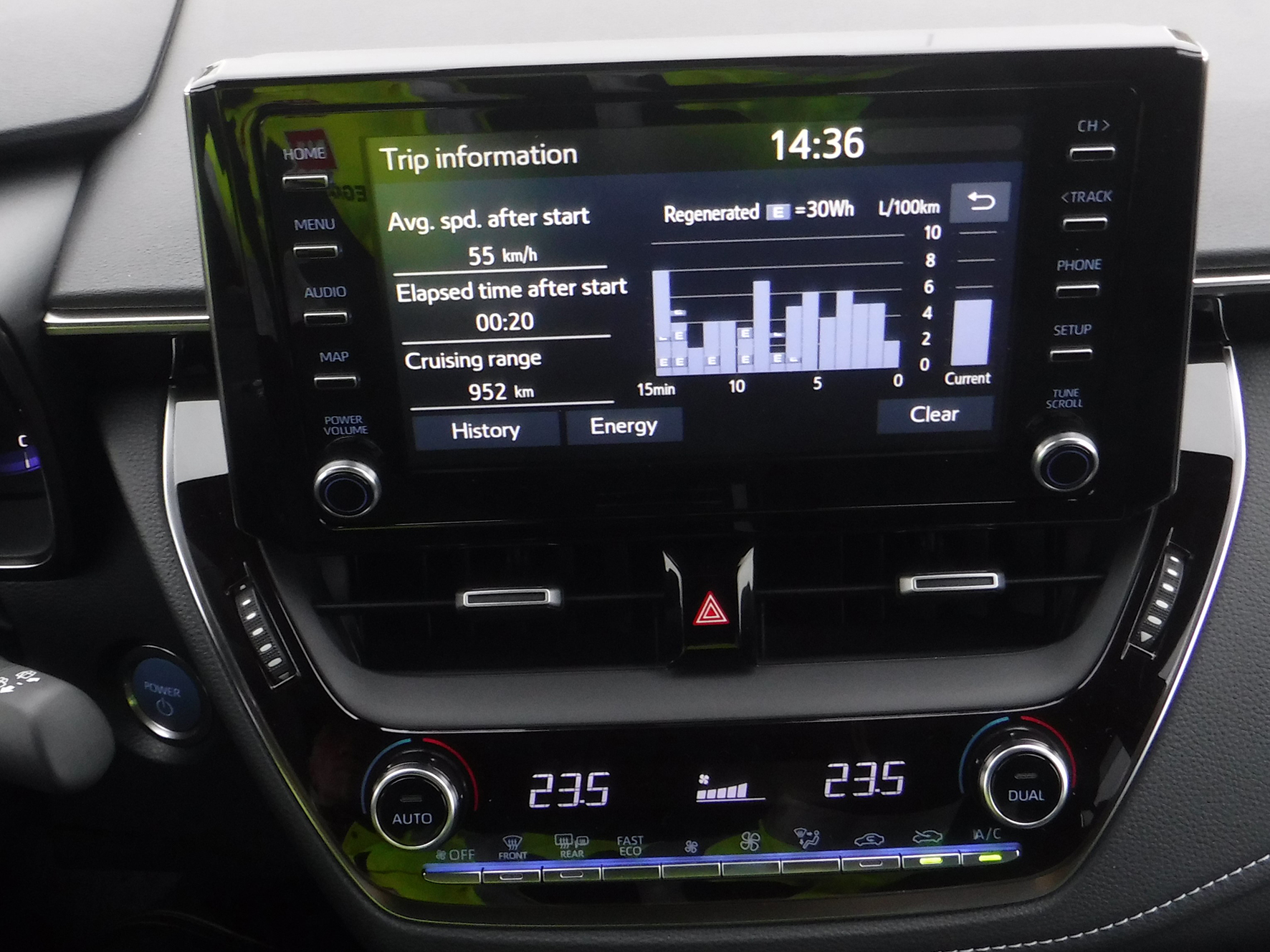 Bíllinn sem prófaður var heitir Toyota Corolla Hybrid Active og er sjálfskiptur með 122 hestafla 1798 cc bensínvél. Hún hleður rafmagni í akstri inn á rafgeyma fyrir rafmagnsmótorinn og einnig er hleðslan tengd inn á bremsurnar sem hleður líka á rafhlöðurnar þegar maður bremsar.