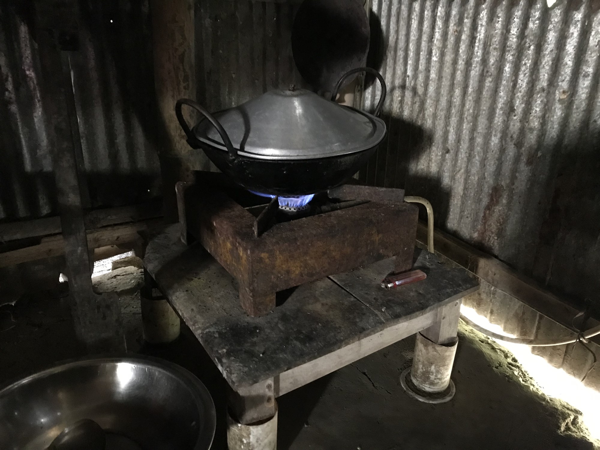 Heimagerð lífgasver eru afar algeng víða um heim, hér sést efsti hluti eins þeirra og gasslangan frá því sem lá beint inn í eldavélina í eldhúsinu. Mynd: Snorri Sigurðsson.