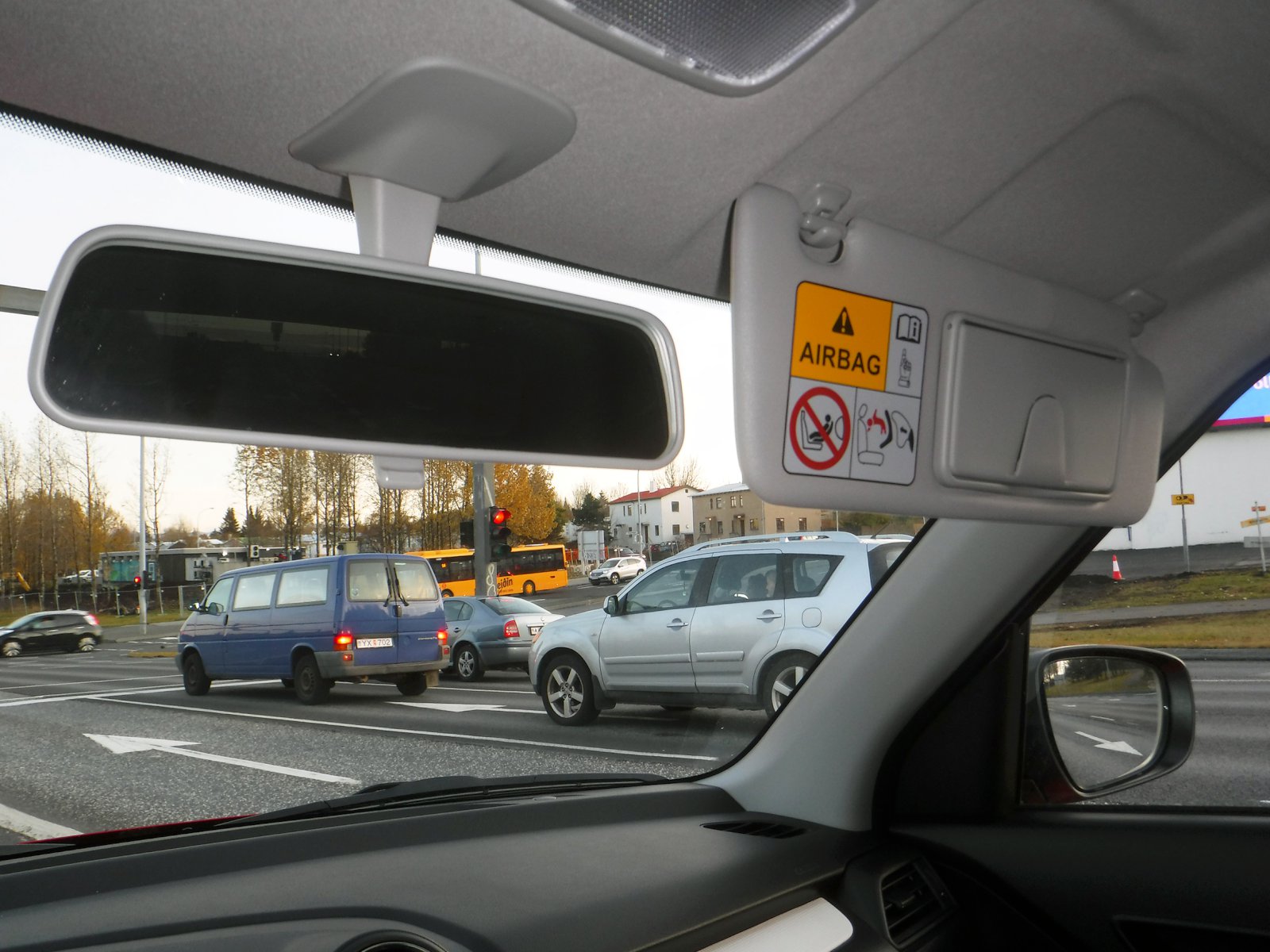 Á meðan prufuakstrinum stóð var sólin lágt á lofti og var aðeins að trufla útsýni úr bílnum, dæmigert „sólskyggnaveður“, en eini galli bílsins í þessum prufuakstri fannst mér vera að sólskyggnin eru of lítil og hefði ég viljað hafa haft derhúfu til að hjálpa við aksturinn. Tel reyndar gott ráð fyrir eigendur svona bíla að hafa alltaf derhúfu í bílnum til taks ef þeir lenda í svona akstursaðstæðum.