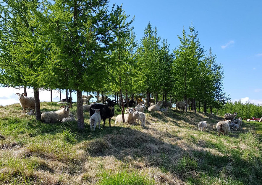 Það gerir skóginum mjög gott. Til að mynda bítur búpeningurinn sinuna úr botni skógarins og minnkar þannig stórlega hættu á gróðureldum. Þegar fé gengur um skóginn bítur það fyrst og fremst nýgræðinginn að vori. Það er því mikilvægt að trén, sem ætlunin er að rækta til nytja, séu nægilega stór og þroskuð þegar fénu er sleppt í hann og í lerkiskógi er gott að miða við 15 ára skóg. Ekki er annað að sjá en féð njóti þess að vera í skjóli trjánna.