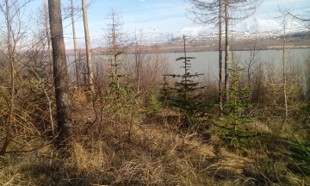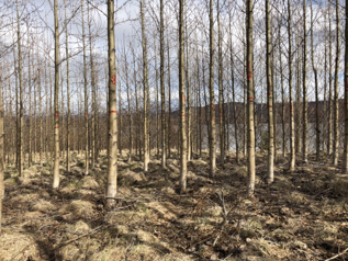 Uppkvistað beinvaxta lerki og uppvaxandi ungt greni. Mynd / Lárus Heiðarsson.