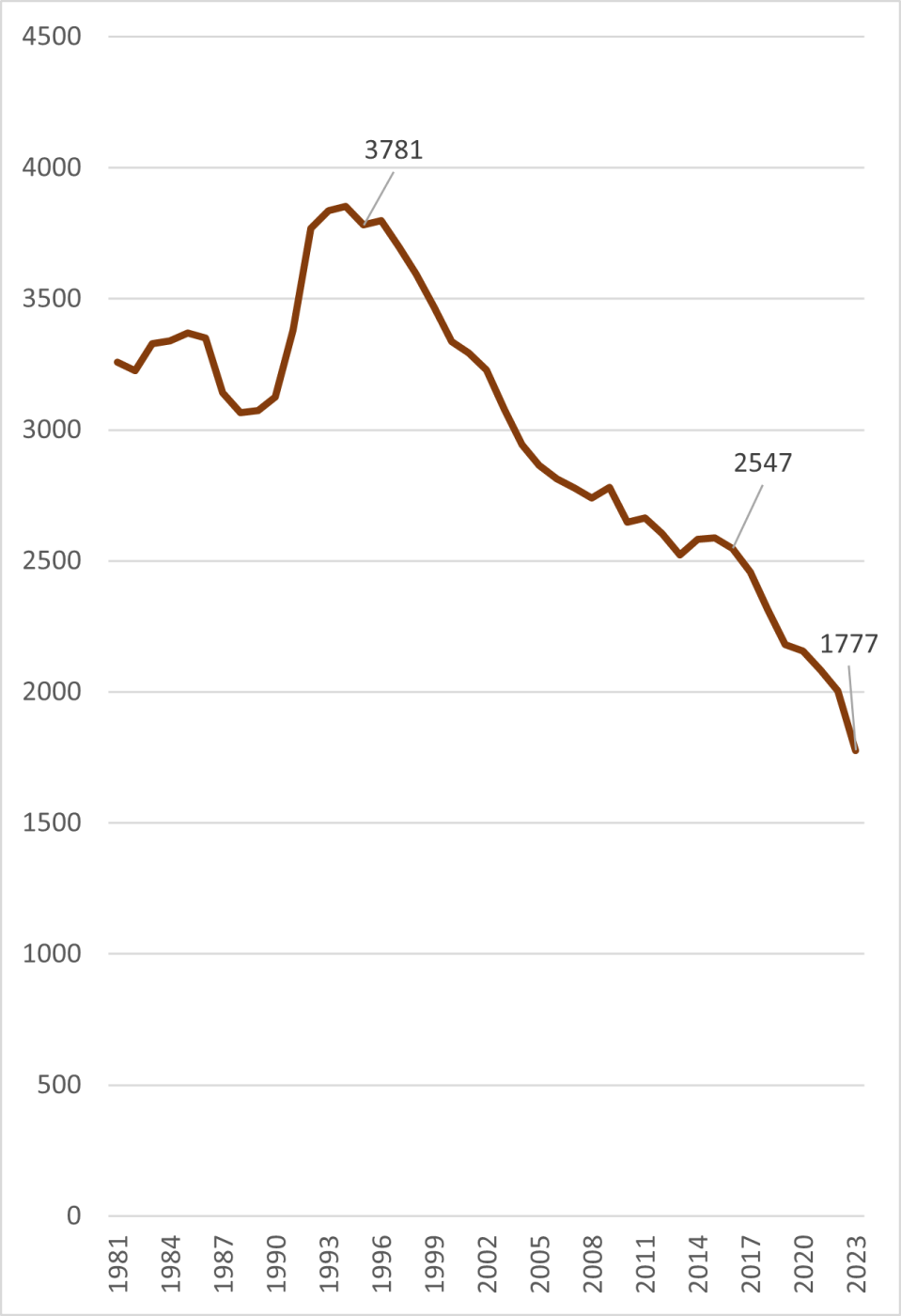 Fjöldi sauðfjárbænda eftir árum.