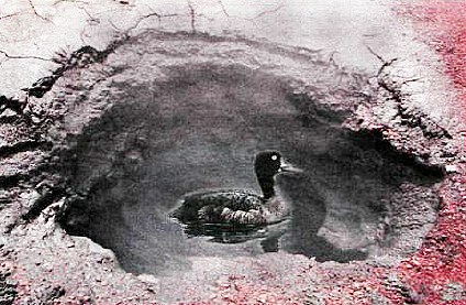 Það veldur þeim þó miklum heilabrotum hvernig fuglarnir geti lifað í sjóðandi heitu vatni. „En ef við hins vegar ætlum að telja þetta náttúrulega fugla þá veldur það allmiklum vandræðum, jafnvel þótt fuglarnir haldi sig ekki í sjóðandi vatni heldur syndi aðeins skamma stund til þess að skríða niður í holur á jörðinni, líkt og keldusvínið. Fiður þeirra og hin harða húð á nefi þeirra og fótum gæti ef til vill þolað hitann og jafnvel haldið vatninu frá líkama þeirra. En hvað á að segja um augun? Þau hlytu að vera með allt öðrum hætti en augu annarra dýra, er menn þekkja, ef þau ættu að þola þennan hita.“