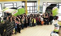 Allur hópurinn í Claas rúllu-stórbaggaverksmiðjunni.