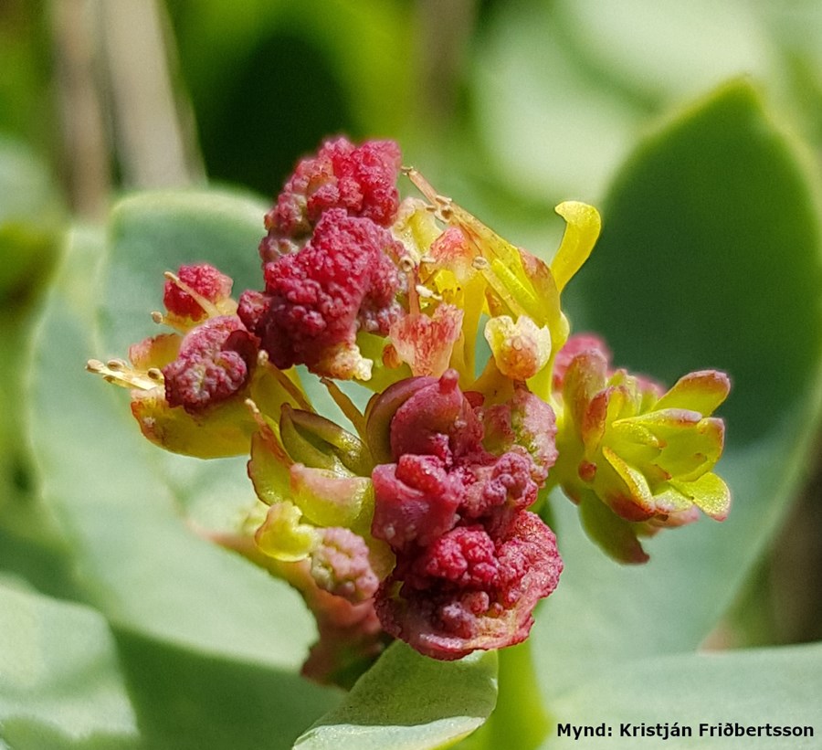 Burnirótin er ekki ein um slíka ábúendur. Svipaða mítla má t.d. finna á grasvíði/smjörlaufi (Salix herbacea) og sjást ummerkin þar líka einna helst í kringum blóm eða nærliggjandi blöð. Hafið endilega augun opin í náttúrunni. Flestir taka eflaust ekki eftir neinu óvanalegu, en einhverjir hafa séð mun og velt þessu fyrir sér. Af því mítlarnir eru lítt þekktir meðal almennings hérlendis og sjást ekki utan smásjár, er ekki skrýtið að fólki detti í hug sveppasýking.