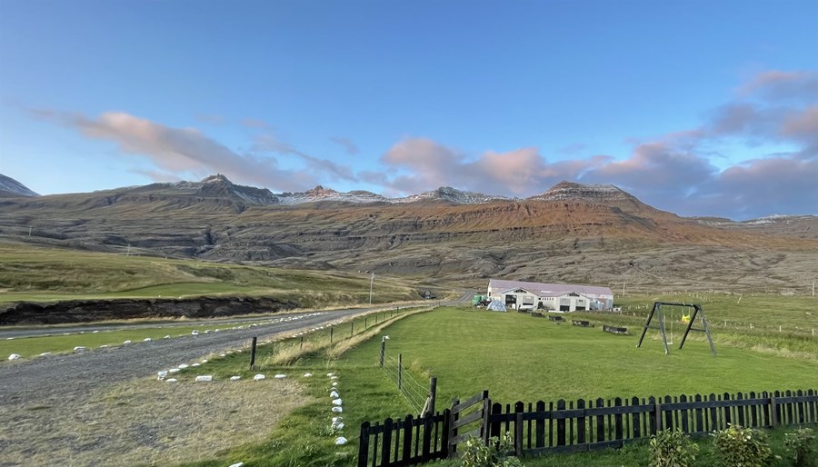 Undanfarin tvö ár hefur fé í fjallinu fyrir ofan bæinn fækkað umtalsvert, því stærsti fjárbóndinn okkar megin í firðinum brá búi og voru því aðeins ríflega 100 gripir í fjallinu í sumar. Hæstu tindarnir eru innan við 1.000 m á hæð, en að öllu jöfnu er fé ekki svo hátt uppi.