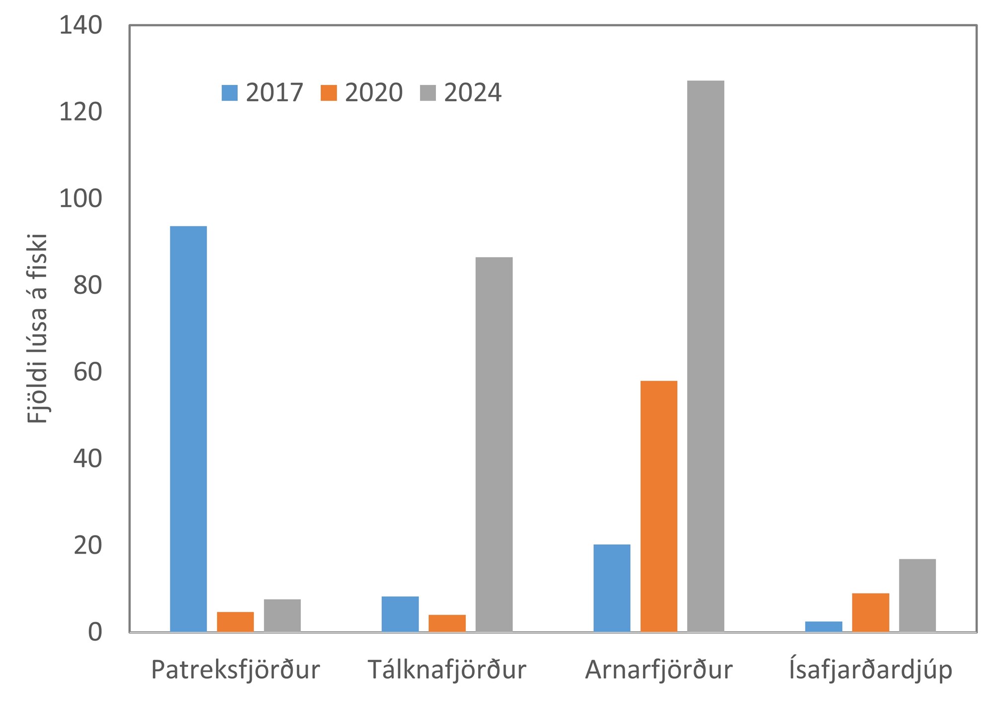 Það vekur athygli í nýlegu umhverfismati fyrir aukningu á framleiðsluheimildum í sjókvíaeldi í Arnarfirði að lítið er gert úr skaðsemi laxalúsar frá eldinu á villta laxfiskastofna þrátt fyrir að laxalús hafi fjölgað mikið á villtum laxfiskum í firðinum á síðustu árum (mynd 1). Laxalúsaálag á villtum laxfiskum hefur aukist samfara auknu sjókvíaeldi í Arnarfirði og Ísafjarðardjúpi. Meiri sveiflur eru í Tálknafirði og Patreksfirði sem má að einhverju leyti sjá í samhengi við hvíld fjarðanna eftir eldi á hverri kynslóð.