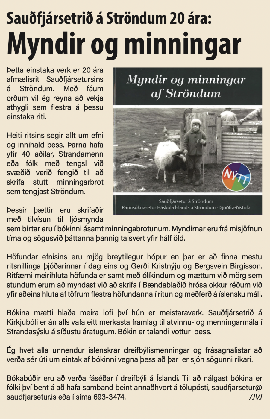 Eftir þessar dapurlegu fréttir um týnd litargen hjá íslensku sauðfé er rétt að enda þennan pistil á jákvæðari nótum. Í grein Emmu og samstarfsmanna er sagt frá Úlfi 19-507 í Hlíð í Lóni sem þau Bjarni og Kristín áttu. Hrúturinn sýndist næst því að vera grámórauður að lit. Hér er samt áreiðanlega um nýtt gen að ræða vegna þess að þegar haldið er undir hann dökkum ám fóru að fæðast hvít afkvæmi. Samkvæmt minni þekkingu er þetta fyrsta dæmi um slíkt hjá sauðfé í okkar heimshluta, að það fæðist hvít afkvæmi þegar æxlað er saman tveim dökkum kindum. Hér er áreiðanlega komið verðugt verkefni fyrir unga vísindamenn að rannsaka nánar og hljóta af heimsfrægð. Við Bjarni ræðum saman vikulega nær eingöngu um sauðfé. Eftir að ég las um hrútinn í grein Emmu hef ég aflað mér frekari upplýsinga um málið en fram koma í áðurnefndri grein. Hrúturinn sjálfur er dauður. Bjarni segir hins vegar að genið hafi fyrst komið fram hjá móður Úlfs. Segist hann sérstaklega hafa sýnt mér þessa á, þegar ég var þar einhverju sinni í fjárstússi með honum, og spurt mig hvaða litur væri á ánni. Segir mig ekki hafa sýnt þessu neinn áhuga en því miður löngu gleymt. Undan Úlfi munu nú til tveir synir hans sem sýnt hafa sams konar litaerfðir hjá sínum afkvæmum og faðir hans gerði. Rannsóknaefniviðurinn bíður eftir færum vísindamanni og fær hann áreiðanlega í kaupbæti mikla fræðslu um íslenska sauðfjárrækt hjá Bjarna.