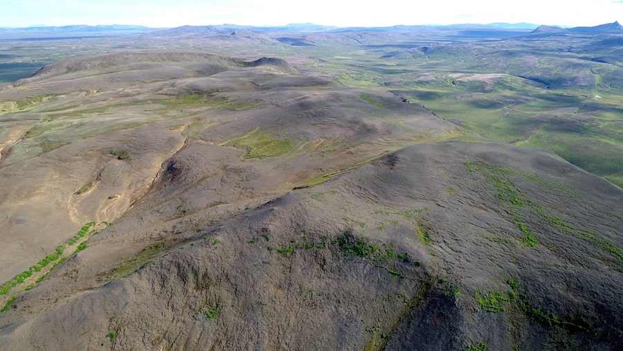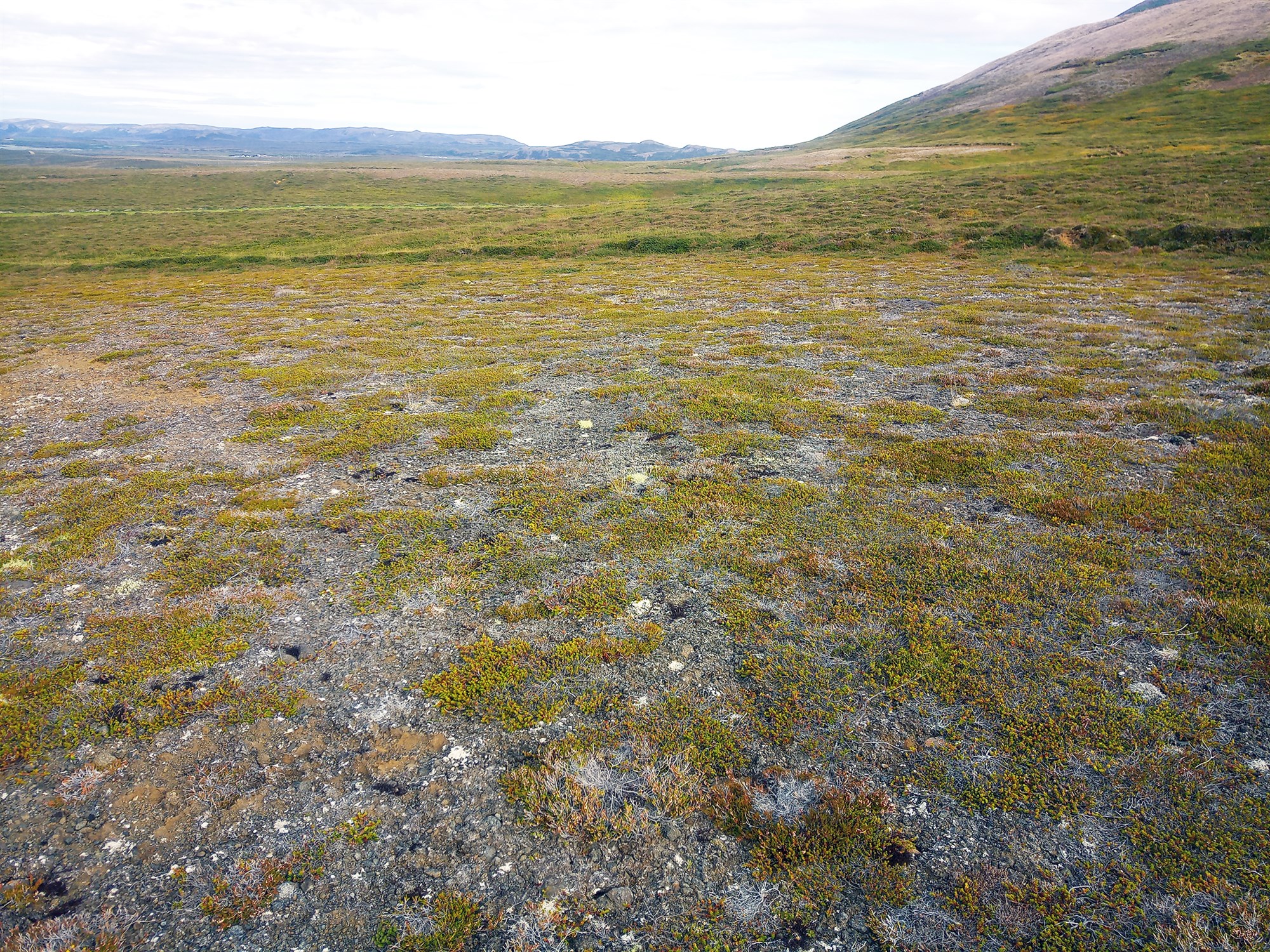 Mynd af mel eftir áratuga uppgræðslu með tilbúnum áburði og grasfræi.