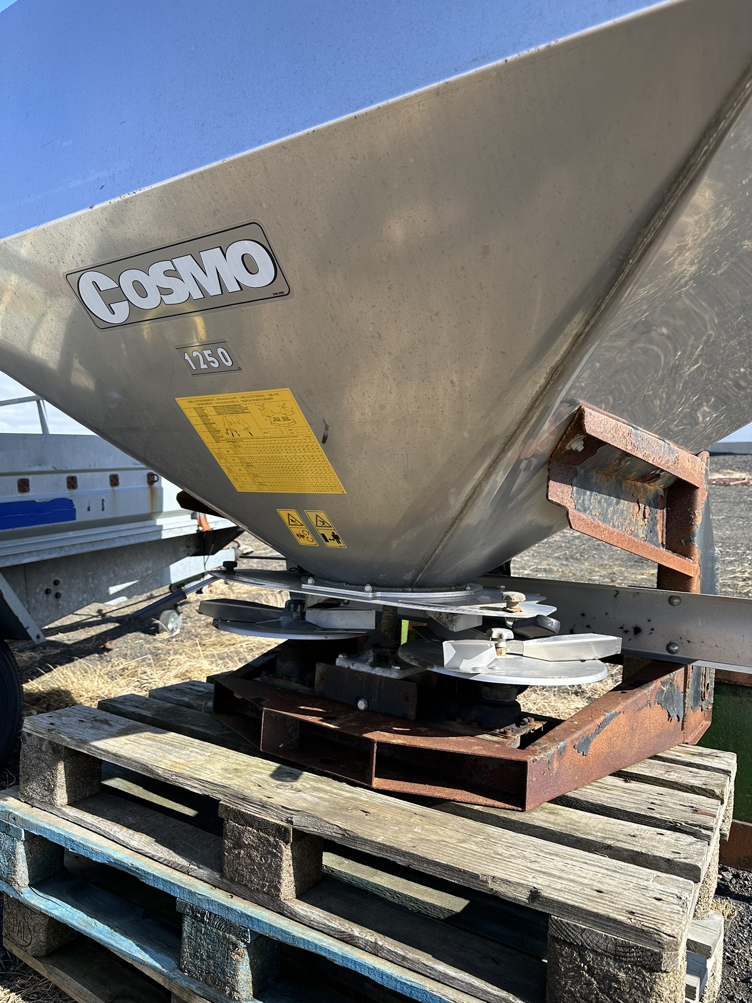 Áburðardreifari til sölu, karið og allur dreifibúnaður úr ryðfríu stáli, er með kögglasigti, ítalskur af gerðinni Cosmos 1250, og er fleitiifullur með...Skoða auglýsingu